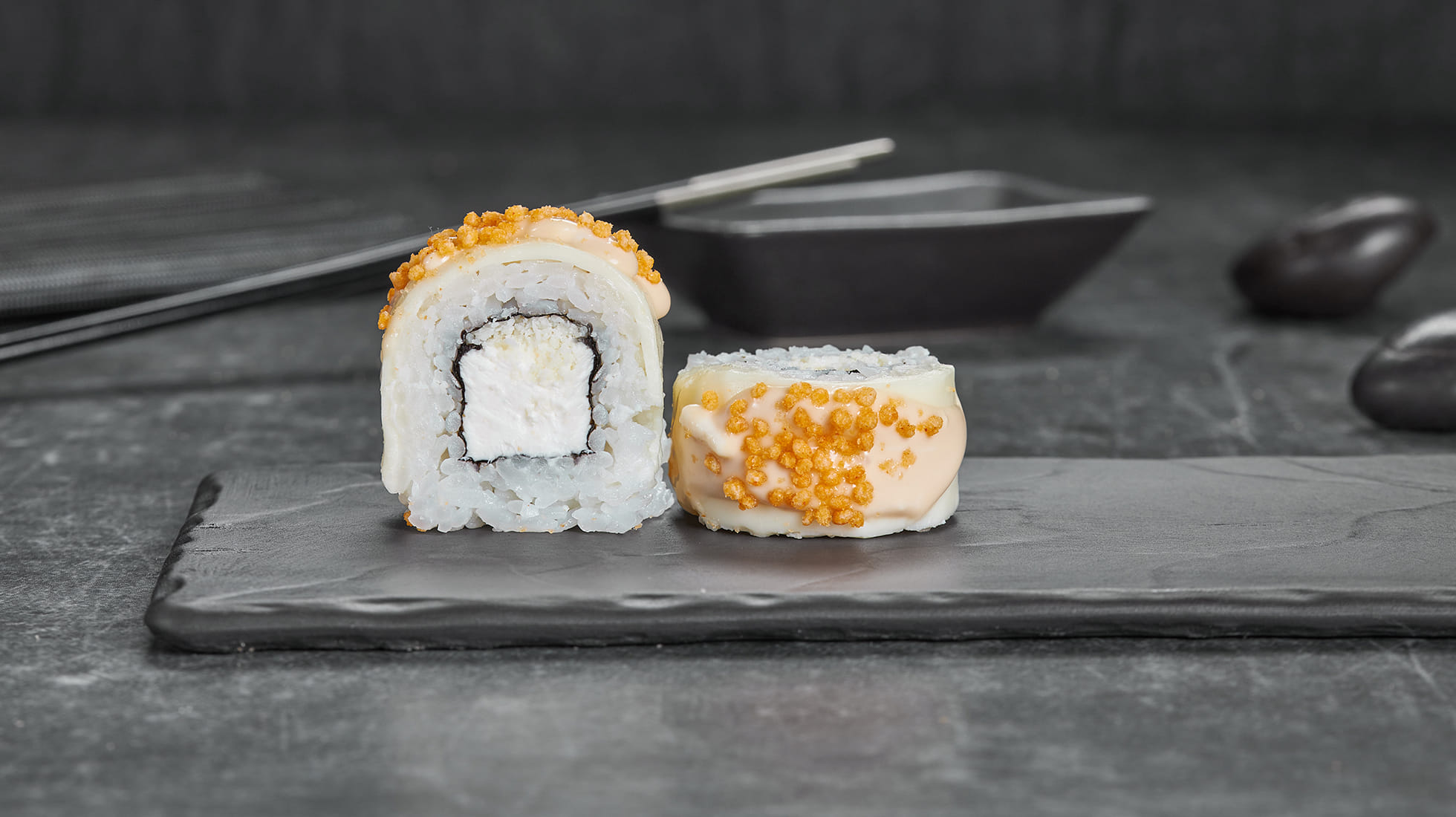 Состав: Крем чиз, сыр пармезан, сыр пластик, японский соус, рисовые шарики (том ям), рис, нори. *Внешний вид блюда может отличаться от фото на сайте.